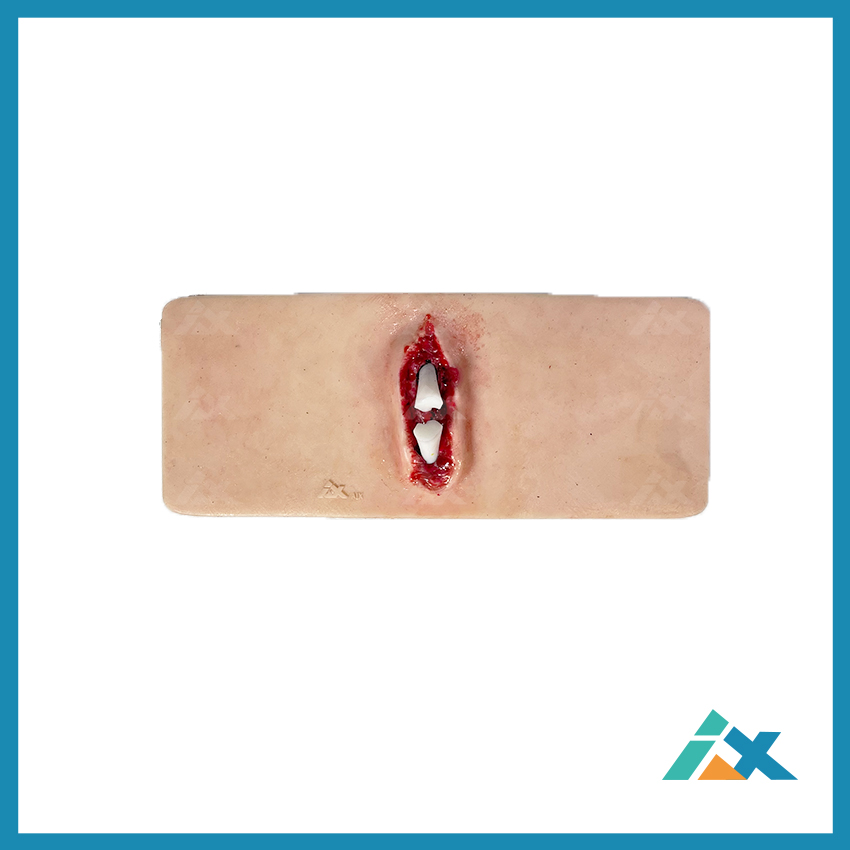 •可穿戴於真人身上,在模擬訓練更快速的呈現傷情;透過重力引流袋模擬出血情況。